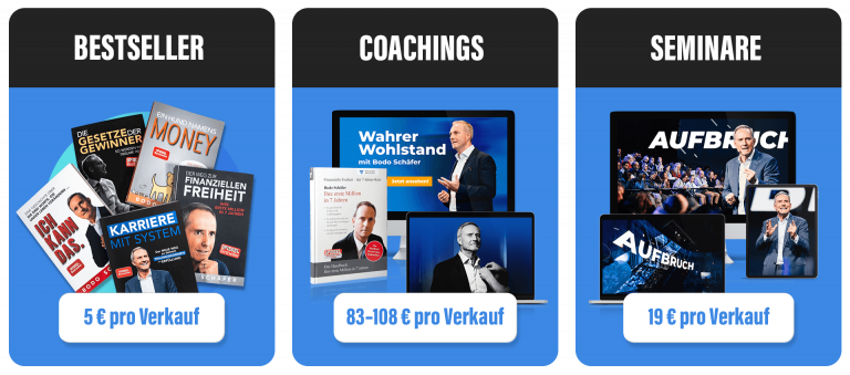 Als offizieller Partner bekommst Du attraktive Provisionen auf Bodos Produkte und kannst Menschen in Deinem Umfeld helfen, finanziell frei zu werden.